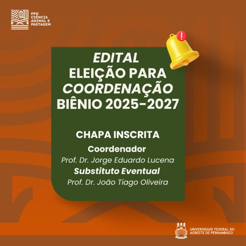 - Homologação da chapa inscrita para Coordenação e Substituto Eventual do PPGCAP Biênio 2025-2027