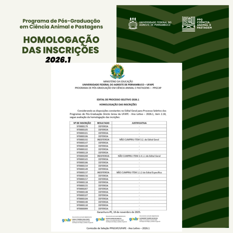 - Homologação das inscrições para o processo seletivo do PPGCAP – 2026.1